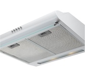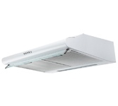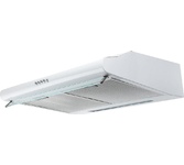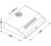 Цвет корпуса - белый,Мощность - 140Вт,Размеры вытяжки (ШхГхВ) - 595х500х140,Максимальный уровень шума (dB) - 54,Подсветка - 2 x E14 40W,Диаметр выхода - 120мм,Управление - кнопочное ,Тип фильтра - фильтр угольный №2