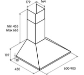 Габариты (ВхШхГ), см:100х60х50, производительность: 650 м куб/час, корпус цвет металла: черный, переключатель: кнопочный, кол-во скоростей: 3, освещение, Вт (макс): 2х20 Вт, Лампы галогенные, фильтр жировой + угольный