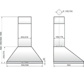 Ширина 50 см, подвесная Корпус стекло черное Фильтр алюминиевый Сенсорное управление 3 скорости Мощность двигателя: 180 Вт Подсветка: 1 LED лампа * 3 Вт Мощность всасывания: 750 м3/ч Уровень шума (дБА): 58 Размер 500?330?(780~1080) мм Напряжение 220-240 В, 50-60 Гц