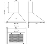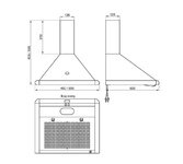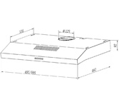 Ширина 52 см, подвесная Корпус сталь Фильтр алюминиевый кнопочное управление 3 скорости Мощность двигателя: 40 Вт Подсветка: 2 LED лампы * 2 Вт Мощность всасывания: 275 м3/ч Уровень шума (дБА): 63 Размер 520?290?176 мм, Напряжение 220-240 В, 50-60 Гц