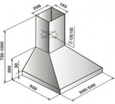Ширина исполнения 600мм, Потребляемая мощность Вт,не более 170. Освещение 1х40Вт.Режим работы-Вытяжка/рециркуляция.