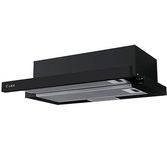 Черный, Ширина 600мм, Воздушный поток 400 м?/ч, Мощность освещения 1x5 Вт, 2 aлюминиевых фильтра, необходимое количество угольных фильтров - 1 шт, Модель угольного фильтра PF-01, Уровень шума 44 дБ, кнопочное управление, Вес нетто 5,30 кг, Турция