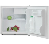 • габариты 49,3х47,4х44,6см • цвет Белый • объем 41л • механическое управление • класс энергоэффективности А+ Компактный холодильник с отделением для быстрого охлаждения напитков * Климатический класс SN,N,ST,T * Суточный расход электроэнергии, при температуре окружающего воздуха 24°C, кВтч 0.3 * Возможность перевешивания двери * Количество полок в холодильном отделении 1 * Температура в отделении для хранения свежих пищевых продуктов От 2 до 8 °C * Материал полок металл * Оттаивание холодильной камеры ручное *