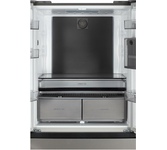 Многодверный холодильник-морозильник серии French Door/Slot-in предназначен для охлаждения, хранения и замораживания большого объема продуктов. Представляет собой очень вместительную многокамерную модель с т. н. «французской» дверью: верхнее холодильное отделение имеет распашные двери, а нижнее морозильное состоит из 2-х объемных и полностью выдвигаемых ящиков. Эта современная вместительная модель оснащена передовой технологией Full No Frost и инверторным компрессором. Отдельностоящий полувстраиваемый холодильник Slot-in со скрытым конденсатором можно установить в нишу, вплотную к стене или к другим приборам. Двери холодильника открываются под прямым углом, что позволяет свободно выдвигать ящики, доставать полки и легко извлекать продукты. Технология Slot-In способствует улучшению эргономики кухонного пространства, повышает удобство и комфорт использования прибора. Особенности: Высокий класс энергоэффективности А+ Общий полезный объем 404 л Полезный объем холодильной камеры 309 л Полезный объем морозильной ка