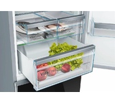 Комбинированный холодильник-морозильник с EasyFresh и NoFrost Особенности: EasyFresh Наш контейнер EasyFresh гарантирует свежесть продуктов в вашем доме, как на рынке. Неупакованные фрукты, овощи или плоды: здесь всё хранится оптимально. Благодаря плотному закрытию контейнера под воздействием продуктов в нём повышается влажность воздуха. Таким образом, продукты остаются свежими долгое время. NoFrost Открывая морозильное отделение, вы хотите видеть замороженные продукты, а никак не лёд или иней. NoFrost защищает морозильную камеру от нежелательного обледенения, расходующего много энергии и порой стоящего достаточно дорого. NoFrost означает: никакого больше утомительного и продолжительного размораживания морозильного отделения, больше времени для других дел - и экономия денег. DuoCooling Благодаря двум полностью раздельным контурам охлаждения DuoCooling обеспечивает отсутствие воздухообмена между холодильным и морозильным отделениями. Продукты питания не засыхают,а запах не передаётся. А это значит: меньше выбр