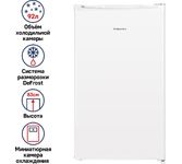 Размеры (ШхВхГ): 47 х 83.1 х 44.7 см * Цвет серебристыйй * Общий объём, л: 92 Полезный объём, л: 85. Общий объем морозильного отделения, л 7 * Система разморозки: Ручная * Тип компрессора: Стандартный * Уровень шума, дБ: 40 * Энергопотребление, кВтч/год: 113 * Класс энергетической эффективности: A+ * Количество полок холодильной камеры: 1 Количество боковых полок: 3 * Материал фасада: Эмаль * Материал корпуса: Металл * Перенавешиваемые двери * Хладагент R: 600а * Климатический класс: SN, N, ST, T * Климатический класс: ST * Вес товара без упаковки (нетто), кг: 19 * Страна: Китай *