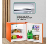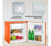 (ШхГхВ)45х47х50 см; Цвет серебряный.Класс энергопотребления: А; Климатический тип: N/ST; Количество камер: 1; Количество компрессоров: 1; Объем (л): 50 л; Объем холодильной камеры, л: 44; Размораживание морозильной камеры: ручное; Расположение морозильной камеры: Верхнее; Система размораживания: Defrost; Тип управления: механический; Уровень шума, дБ: 42; Хладагент: R600a, 18г.