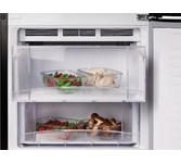 2-камерный, 330 л (ХК 262 л + МК 68 л), класс А+, МК вверху, 4 полки стекло, овощной ящик, LED-освещение, автоматическая система оттаивания, 177х57х63 см, цвет: черный матовый