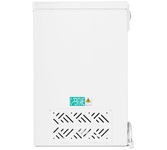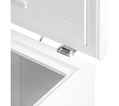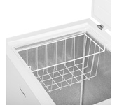 Морозильный ларь MAUNFELD MFL150W — это отдельностоящая морозильная камера. Дверной упор здесь расположен сверху, это обеспечивает удобную загрузку, также легко доставать те продукты, которые нужны, т. к. пользователю сразу видно большинство продуктов. Внутренняя подсветка состоит из светодиодного освещения — это современный и выгодный вариант. Светодиодные лампы служат практически на протяжении срока всего использования морозилки, несмотря на то, что они стоят дороже, это и низкое потребление электроэнергии полностью окупают переплату. Морозилка Маунфилд при небольших габаритах оснащена вместительной камерой. Размеры следующие: 84 сантиметра в высоту, 63.5 сантиметров в ширину и 55.6 сантиметров в высоту, объем при этом составляет 142 литра. Прибор выполнен в современном стиле модерн, используется нейтральный белый цвет, поэтому модель будет отлично смотреться в комнате с любым интерьером. Корпус изготовлен из стали. Это прочный и надежный материал, он не боится физических воздействий и низких темп