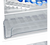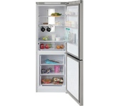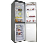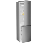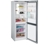 Двухдверный холодильник серии COMBI, морозильная камера снизу. No Frost, полезный объем 237 (182+55) литров, А+ класс, 42 дБ, R600а, N-ST, LED подсветка, потребление энергии 256 кВт/год, мощность замораживания 2,5 кг/сутки. Холодильное отделение: 3 полки из стекла, 3 боковых полки, 1 большой ящик для овощей и фруктов. Морозильное отделение: 2 выдвижных ящика, 1 лоток с легким доступом. Вес нетто и брутто 51 и 55 кг, цвет нержавеющая сталь. Регулируемые ножки, перенавешиваемые двери, интегрированные ручки.