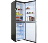 (ШxГxВ)55x60x180см.Общий объем, л: 300 Общий объем холодильной камеры (л): 201 Общий объем морозильной камеры (л): 61 Класс энергоэффективности: А+ Климатический класс: N / ST Внутренняя подсветка: да Основной цвет: Графит Мощность замораживания, кг/сут: 3 Температура охлаждения в морозильной камере: до -18 Тип управления и температурный контроль: электронное Термоизоляция: циклопентан Тип компрессора / количество, шт: герметичный / 1 Энергопотребление в год, кВт*ч/год: 336 Режим быстрого охлаждения и заморозки: да Количество камер, шт: 2 Количество дверей, шт: 2 Тип ручки: встроенная Полезный объем морозильной камеры, л: 61 Система обдува и охлаждения: total No-frost Материал контейнера для фруктов и овощей / количество, шт: пластик / 1 Полезный объем холодильной камеры, л: 201 Полезный объем, л: 262 Материал дверных полок / количество, шт: пластик / 3