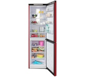 Двухкамерный холодильник с нижней морозильной камерой с системой Full No Frost с дисплеем на двери • цвет Красный • LED дисплей на двери • система охлаждения Multi Air Flow • регулировка влажности Humidity control • единая зона для овощей и фруктов Fresh Zone с разделителем • полка для бутылок, масленка • LED освещение • габариты 192х60х62,5см • объем 340/210/130л