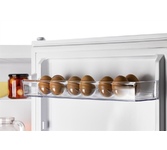 Однокамерный холодильник Общие данные: Размеры: высота (см): 63 ширина (см): 55.4 глубина (см): 62.4 Общий объем/ Полезный объем: Холодильника (л): 102/86 Холодильной камеры (л): 102/86 Тип управления: механический Класс энергопотребления: A+ Климатический класс: SN-ST (от +10°С до +38°С) Количество компрессоров: 1 Тип компрессора: стандартный Годовое потребление энергии: 113 кВтч/год Цвет: белый Холодильное отделение: 1 полка из закаленного стекла 3 полки на двери Лоток для яиц Внутреннее освещение: лампа накаливания Ручное размораживание 2 ящика для овощей и фруктов Морозильное отделение: Лоток для приготовления кубиков льда Дополнительная информация: Обслуживание системы управления: поворотный регулятор Ножки, регулируемые по высоте: 2 Дизайн SwingDesign Уровень шума: 39 дБ