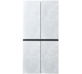 Холодильник Side-by-side с текстурированным белым стеклом • система Full No Frost • Dual Inverter: инверторные компрессор и вентилятор • дисплей на двери • система распределения воздушных потоков MultiFlow • класс энергоэффективности А++ • деодорирующий фильтр Nano Ag+ • габариты 178,5x91,3x67см • объем 541/343/198л