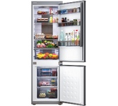 Комбинированный холодильник-морозильник с EasyFresh и NoFrost Особенности: NoFrost Открывая морозильное отделение, вы хотите видеть замороженные продукты, а никак не лёд или иней. NoFrost защищает морозильную камеру от нежелательного обледенения, расходующего много энергии и порой стоящего достаточно дорого. NoFrost означает: никакого больше утомительного и продолжительного размораживания морозильного отделения, больше времени для других дел - и экономия денег. EasyFresh Наш контейнер EasyFresh гарантирует свежесть продуктов в вашем доме, как на рынке. Неупакованные фрукты, овощи или плоды: здесь всё хранится оптимально. Благодаря плотному закрытию контейнера под воздействием продуктов в нём повышается влажность воздуха. Таким образом, продукты остаются свежими долгое время. DuoCooling Благодаря двум полностью раздельным контурам охлаждения DuoCooling обеспечивает отсутствие воздухообмена между холодильным и морозильным отделениями. Продукты питания не засыхают,а запах не передаётся. А это значит: меньше выбр