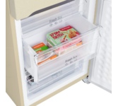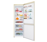 Холодильник Maunfeld MFF185NFS выполнен в бежевом цвете. Он имеет две камеры и габариты 185,5×59,5×59.5. Светодиодное освещение позволяет с удобством обозревать продуктовые запасы, не доставая их из холодильника или, наоборот, оптимально размещать внутри новые упаковки. Удобное электронное управление при помощи сенсорных переключателей гарантирует быструю настройку всех необходимых параметров работы прибора. Благодаря сенсорному дисплею вы можете в графическом и цифровом виде видеть информацию. Ко внутренним настройкам модели относится также автоматическое размораживание. Морозильная камера предусматривает 3 ящика, при этом мощность замораживания составляет 5 кг/сутки. Объем морозильной камеры равен 104 л. В холодильном отделении товара имеется 3 регулируемые полки из закаленного стекла, что позволяют настроить пространство устройства под предпочтения пользователя, а 3 полки на двери и 2 ящика. Объем составляет 211л. Система SmartFrost — конструктивное решение, при котором хладагент распределяетс