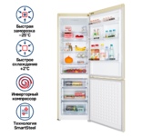 Холодильник MAUNFELD MFF195NFIBG10 выполнен в бежевом цвете и оснащен сенсорной панелью управления. Уровень шума составляет всего 37 дБ, что значительно ниже, чем у других моделей, поэтому прибор не будет мешать вашему разговору на кухне. Звуковая сигнализация оповестит о необходимости закрытия дверцы. Ключевые преимущества: Сенсорное управление Низкий уровень шума Сигнализация открытой двери