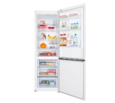Холодильник Maunfeld MFF185NFS это двухкамерный прибор, выполненный в белом цвете. Классический дизайн подойдет к абсолютно любому кухонному интерьеру и дополнит его. Модель имеет стандартные габариты, поэтому будет удобна для встраивания. Высота устройства — 185,5 см, ширина — 59,5 см, глубина — 64,5 см. В его основу положен надежный и экономичный инверторный компрессор, соответствующий классу А+. Классификация по уровню энергопотребления дает объективное представление о том, насколько эффективно прибор расходует данный ресурс. Холодильник Maunfeld MFF185NFS оборудован дисплеем с цифровой индикацией температуры и настроек. Управление техникой осуществляется с помощью сенсорных переключателей. Помимо этого, светодиодная подсветка ярко освещает внутреннее пространство камеры и отличается долговечностью. В холодильном отделении товара имеется 3 регулируемые полки из закаленного стекла, что позволяют настроить пространство устройства под предпочтения пользователя, 4 полки на двери и 2 ящика