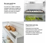 Холодильно-морозильный автомат с функцией SmartFrost Особенности: Технология SmartFrost Благодаря использованию технологии SmartFrost на внутренних стенках и на замороженных продуктах образуется значительно меньше инея. Технология позволяет значительно реже размораживать холодильник. Гладкие внутренние стенки легко моются. Запененный испаритель в морозильной камере обеспечивает равномерное охлаждение и способствует сбережению электроэнергии. Полка для бутылок Полка для бутылок с привлекательным дизайном приспособлена для практичного хранения напитков. На полке можно компактно разместить бутылки. Контейнеры FrostSafe Выдвижные контейнеры FrostSafe отличаются особенно высоким исполнением и закрытой конструкцией. Благодаря этому в контейнерах дольше сохраняется холод при открывании двери. Прозрачная передняя панель контейнера обеспечивает оптимальный обзор хранящихся в нем замороженных продуктов. Система VarioSpace Во всех морозильниках с технологией NoFrost и SmartFrost выдвижные контейнеры и прозрачные полки и