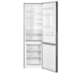 Холодильник Maunfeld MFF200NFBE выполнен в черном цвете и имеет габариты 59,5×200×60 см. Модель отлично впишется в интерьер вашей кухни. Современный компрессор экономит электроэнергию, тихо работает — шум составляет 42дБ. Устройство может быть установлено на кухне вплотную к мебели и стенам без зазоров, благодаря конденсаторной решетке закрытого типа. Ко встроенным настройкам устройства относится функция «Отпуск», которая удобна, если требуется надолго отлучиться из дома или квартиры. Во время ее действия холодильное отделение останавливается, работает только морозильная камера. Хладагент R600A — абсолютно безвреден для окружающей среды, экономичен и не причиняет вреда озоновому слою. Функция Humidity control позволяет регулировать влажность в зоне свежести. Система NoFrost — конструктивное решение, при котором испаритель внесен в отдельный отсек, где и происходит охлаждение воздуха. Общий полезный объем техники составляет 351 л, из которых 257 л приходится на холодильную камеру, а 94 л
