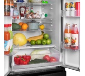 Холодильник Maunfeld MFF185NFB выполнен в черном цвете и в габаритах: высота — 185,5 см, ширина — 59,5 см, глубина — 64,5 см. В его основу положен надежный и экономичный инверторный компрессор, соответствующий классу А+. Классификация по уровню энергопотребления дает объективное представление о том, насколько эффективно устройство расходует данный ресурс. Модели с таким обозначением тратят энергию более рационально. Светодиодное освещение позволяет с удобством обозревать продуктовые запасы, не доставая их из устройства или, наоборот, оптимально размещать внутри новые упаковки. Система NoFrost — конструктивное решение, при котором испаритель внесен в отдельный отсек, где и происходит охлаждение воздуха. Посредством такой компоновке в морозилке снижается влажность, а значит, излишек воды не превращается в наледь. Холодильник Maunfeld MFF185NFB имеет автоматический SuperFrost. Температура в морозильной камере при этом быстро понижается, после того, как процесс замораживания завершится, прибор возвращае