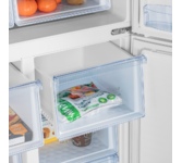 Комбинированный холодильник-морозильник с EasyFresh и NoFrost Особенности: NoFrost Открывая морозильное отделение, вы хотите видеть замороженные продукты, а никак не лёд или иней. NoFrost защищает морозильную камеру от нежелательного обледенения, расходующего много энергии и порой стоящего достаточно дорого. NoFrost означает: никакого больше утомительного и продолжительного размораживания морозильного отделения, больше времени для других дел - и экономия денег. EasyFresh Наш контейнер EasyFresh гарантирует свежесть продуктов в вашем доме, как на рынке. Неупакованные фрукты, овощи или плоды: здесь всё хранится оптимально. Благодаря плотному закрытию контейнера под воздействием продуктов в нём повышается влажность воздуха. Таким образом, продукты остаются свежими долгое время. DuoCooling Благодаря двум полностью раздельным контурам охлаждения DuoCooling обеспечивает отсутствие воздухообмена между холодильным и морозильным отделениями. Продукты питания не засыхают,а запах не передаётся. А это значит: меньше выбр