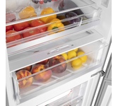 Комбинированный холодильник-морозильник с EasyFresh и NoFrost Особенности: EasyFresh Наш контейнер EasyFresh гарантирует свежесть продуктов в вашем доме, как на рынке. Неупакованные фрукты, овощи или плоды: здесь всё хранится оптимально. Благодаря плотному закрытию контейнера под воздействием продуктов в нём повышается влажность воздуха. Таким образом, продукты остаются свежими долгое время. NoFrost Открывая морозильное отделение, вы хотите видеть замороженные продукты, а никак не лёд или иней. NoFrost защищает морозильную камеру от нежелательного обледенения, расходующего много энергии и порой стоящего достаточно дорого. NoFrost означает: никакого больше утомительного и продолжительного размораживания морозильного отделения, больше времени для других дел - и экономия денег. DuoCooling Благодаря двум полностью раздельным контурам охлаждения DuoCooling обеспечивает отсутствие воздухообмена между холодильным и морозильным отделениями. Продукты питания не засыхают,а запах не передаётся. А это значит: меньше выбр