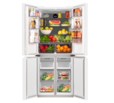 Холодильник Maunfeld MFF183NFWE представляет собой стильное и функциональное устройство, которое станет незаменимым помощником на вашей кухне. Устройство имеет отдельностоящий тип установки, что позволяет разместить его в любой удобной для вас точке кухни. Данный холодильник обладает двумя камерами и четырьмя дверями, обеспечивая удобный доступ к продуктам. Класс энергопотребления A++ гарантирует экономичность использования, а также способствует снижению влияния на окружающую среду. Габариты устройства составляют 181 см в высоту, 78.3 см в ширину и 63 см в глубину, что позволяет вместить внутрь объем в 451 литр, из которых 405 литров полезного объема. Фасад устройства выполнен из стекла, что придает ему эстетический и современный вид. Внутренняя подсветка обеспечивает яркое и равномерное освещение, делая поиск продуктов удобным и быстрым. Дверной упор можно установить как справа, так и слева, в зависимости от предпочтений пользователя. Система NoFrost применяется как в морозильном, так и в холоди