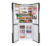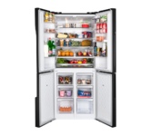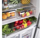 Холодильник Maunfeld MFF182NFSBE — это отдельностоящий прибор, сочетающий в себе современный дизайн и продвинутые технологии. Черная нержавеющая сталь фасада придает ему элегантность и благородство, а также обеспечивает долговечность и устойчивость к механическим повреждениям. Стальной корпус идеально впишется в любой интерьер, будь то классический или современный. Устройство оборудовано двумя камерами и четырьмя дверями, что обеспечивает удобство использования и оптимальное распределение продуктов. Общий объем холодильника составляет 460 литров, из которых 294 литра отводится под холодильное отделение, а 166 литров — под морозильное. Это позволяет разместить большое количество продуктов и сохранить их свежесть на длительное время. Модель оснащена инверторным компрессором, который обеспечивает бесшумную работу и экономит энергию. Класс энергопотребления A+ говорит о высокой энергоэффективности прибора. Внутренняя подсветка на светодиодах делает использование холодильника удобным и комфор
