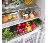 Комбинированный холодильник-морозильник с EasyFresh и NoFrost Особенности: EasyFresh Наш контейнер EasyFresh гарантирует свежесть продуктов в вашем доме, как на рынке. Неупакованные фрукты, овощи или плоды: здесь всё хранится оптимально. Благодаря плотному закрытию контейнера под воздействием продуктов в нём повышается влажность воздуха. Таким образом, продукты остаются свежими долгое время. NoFrost Открывая морозильное отделение, вы хотите видеть замороженные продукты, а никак не лёд или иней. NoFrost защищает морозильную камеру от нежелательного обледенения, расходующего много энергии и порой стоящего достаточно дорого. NoFrost означает: никакого больше утомительного и продолжительного размораживания морозильного отделения, больше времени для других дел - и экономия денег. DuoCooling Благодаря двум полностью раздельным контурам охлаждения DuoCooling обеспечивает отсутствие воздухообмена между холодильным и морозильным отделениями. Продукты питания не засыхают,а запах не передаётся. А это значит: меньше выбр