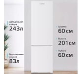 Отдельностоящий двухкамерный холодильник Harper RH5559BB может похвастаться множеством расширенных функций и возможностей. При этом он относится к экономичным бытовым приборам — класс его энергопотребления А+. С технологией Total No Frost Вам теперь не обязательно размораживать холодильник или думать о наледи или образовании инея. Полезный объем холодильного отделения составляет 243 литра, а морозильного — 83 литров. Герметичный тип компрессора обеспечивает оптимальную производительность. Техника оборудована тремя стеклянными полками, ящиком для овощей, лотком для льда и двумя лотками для яиц. Цифровой дисплей для управления двухкамерным холодильником Harper RH5559BB расположен за дверцей. Она открывается вправо, по вашему желанию её можно перенавесить. Имеется цифровой индикатор температуры и светодиодная подсветка. Об открытой дверце холодильника вам сообщит звуковой сигнал.