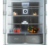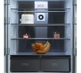 Многокамерный холодильник с текстурированным черным стеклом • система Full No Frost • Dual Inverter: инверторные компрессор и вентилятор • класс энергоэффективности А++ • система распределения воздушных потоков MultiFlow • технология охлаждения Metal Cooling • деодорирующий фильтр Nano Ag+ • габариты 189x83,3x66см • объем 496/334/162л