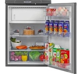 Отдельностоящий однокамерный холодильник Общие данные: Размеры: высота: 83 см ширина: 44,5 см глубина: 46,5 см Общий объем/ Полезный объем: Холодильника: -/90 л Холодильной камеры: -/84 л Морозильной камеры: -/6 л Тип управления: механический Класс энергопотребления: А Климатический класс: N (от +16°С до +32°С) Количество компрессоров: 1 Годовое потребление энергии: 182.5 кВтч/год Цвет: графит Холодильное отделение: 3 полки из стекла 3 дверных кармана Полка для яиц (1 из полок на дверце) Ручное размораживание Зона пониженной температуры сверху Лоток для льда Дополнительная информация: Хладагент R600A Подсветка Перевешиваемая дверь Скребок