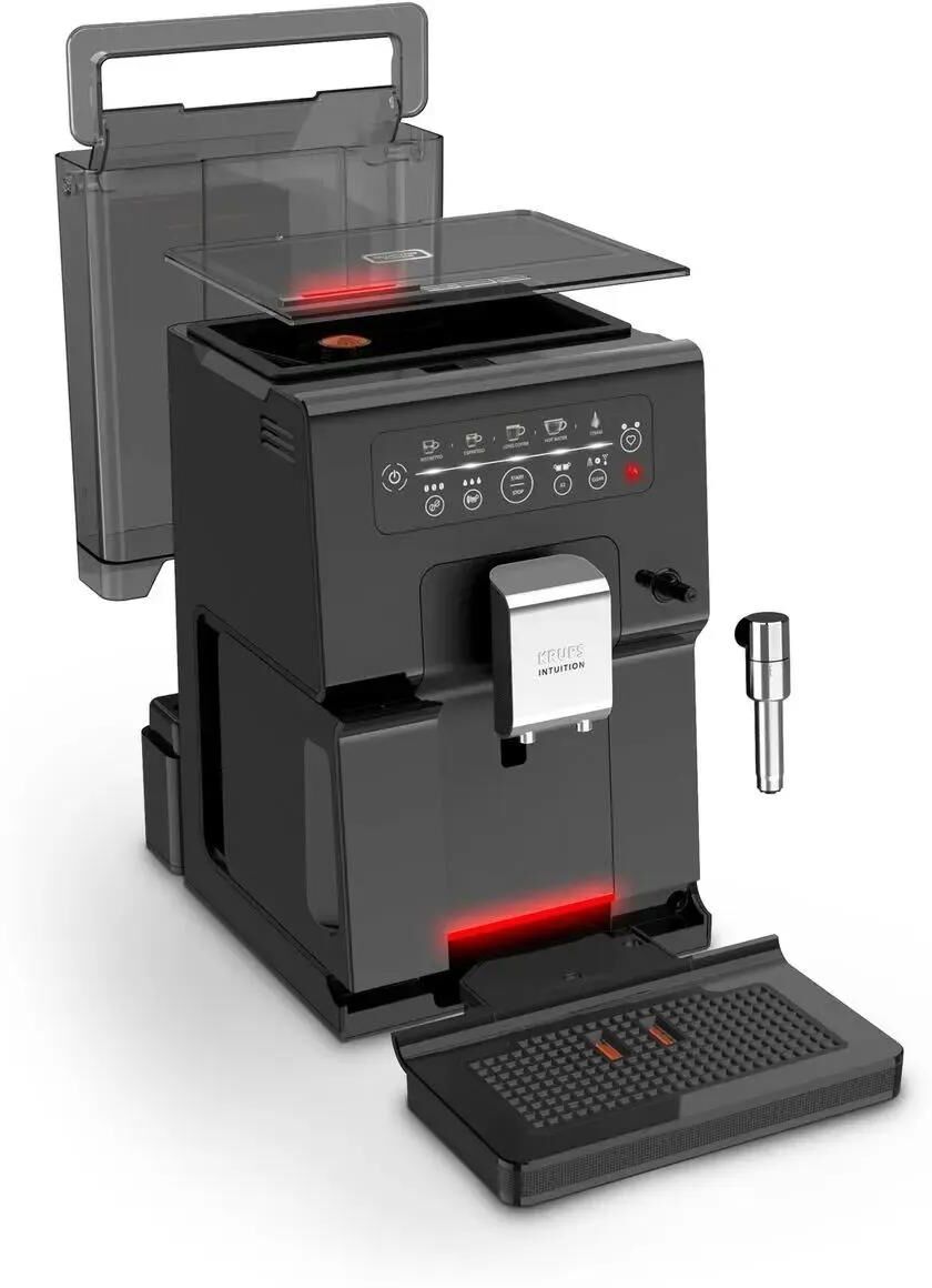 Автоматическая кофемашина Krups Intuition Essential EA870810 с ручным капучинатором приготовит для вас потрясающий кофе, как профессиональный бариста. Инновационная система индикации облегчает ежедневное использование кофемашины и уход за ней. Система подсвечивает резервуар для воды и контейнер для зерен, когда их необходимо наполнить, а также контейнер для кофейной гущи, чтобы вы не забыли его очистить. Эспрессо или кофе с молоком – любой напиток будет вдвойне вкуснее в уюте вашего дома с маленькой кофемашиной с бескомпромиссной работоспособностью. Система Крупс Quattro Force гарантирует потрясающий результат каждый раз с насыщенным вкусом и ароматом. Функция автоматической очистки облегчает уход за кофемашиной компакт и позволяет продлить срок ее службы. После каждого приготовления устройство запускает цикл промывки. Для более тщательной очистки используйте специальную таблетку для очистки кофемашины. Все усовершенствованные функции и возможности – у вас под рукой с интуитивным управлением: функция памяти,