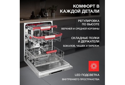 Тип установки: полностью. Загрузка, комплектов посуды: 14. Класс энергопотребления: A+++. Класс мойки: A. Класс сушки: A. Тип сушки: конденсационная. Тип управления: электронное. Тип защиты от протечек: полная (корпус + шланг для заливки воды). Автоматические программы: есть. Количество программ мойки: 9. Максимальный уровень шума: 49. Максимальный расход воды: 17.5. Минимальный расход воды: 10. Высота ниши для встраивания (мин): 82. Ширина ниши для встраивания: 60. Глубина ниши для встраивания: 58. Тип: полноразмерная. Максимальная потребляемая мощность: 2100. Количество температурных режимов: 9. Программы: Интенсивная, Нормальная, ЕСО, Стекло, 90 минут, Быстрая, Замачивание, Все в 1, Авто. Отсрочка запуска: 24. Количество корзин: 3. Габариты упаковки (ед) ДхШхВ: 0.64x0.65x0.88. Вес упаковки (ед): 38. Напряжение питания: 220-240 В. Минимальное время отсрочки запуска: 1. Гарантия: 24 мес.. Размеры (ШxВxГ): 59.8 x 81.5 x 55 см. Безопасность и управление: защита от протечек, таймер отсрочки запуска. Дополнитель