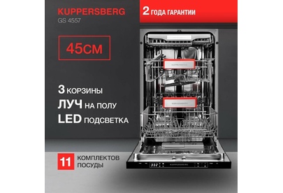 KUPPERSBERG Встраиваемая посудомоечная машина GS 4557, узкая, ширина 44.8см, полновстраиваемая, загр