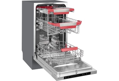 Тип установки: полностью. Загрузка, комплектов посуды: 10. Класс энергопотребления: A++. Класс мойки: A. Класс сушки: A. Тип сушки: конденсационная. Тип управления: электро-механическое. Тип защиты от протечек: полная (корпус + шланг для заливки воды). Количество программ мойки: 6. Максимальный уровень шума: 47. Максимальный расход воды: 9. Время мойки при обычной программе: 205. Особенности: Третья корзина для столовых приборов, Полки для чашек. Высота ниши для встраивания (мин): 85. Ширина ниши для встраивания: 45. Глубина ниши для встраивания: 58. Вес (нетто): 34.4. Тип: узкая. Максимальная потребляемая мощность: 2100. Количество температурных режимов: 7. Программы: Интенсивная, Нормальная, ECO, Стекло, 90 минут, Быстрая. Отсрочка запуска: 24. Количество корзин: 3. Габариты упаковки (ед) ДхШхВ: 0.5x0.64x0.88. Вес упаковки (ед): 39.2. Страна производства: Китай. Материал корпуса: нержавеющая сталь. Технология защиты от протечек: AquaStop. Цвет панели управления: черный. Количество разбрызгивателей: 2. Миним