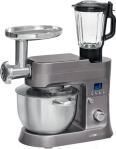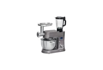 Мощность: 1200 Вт Высокопроизводительная кухонный комбайн Электронный таймер / ЖК-дисплей с подсветкой Электронный контроль скорости 10 скоростей + импульсный режим Плавный старт Чаша из стали 6,2 л для 3-3,5 кг теста Стеклянная чаша блендера 1,5 л Венчик для легкого теста и яичных белков Алюминиевый литой крюк для тяжелого теста Алюминиевый литой крюк для перемешивания Поворотный механизм на 35 ° с блокировкой Прозрачная крышка с отверстием для добавления продуктов Система безопасности Нескользящие ножки-присоски Быстрозажимной патрон для насадок Мясорубка: 3 решетки, насадка для колбас, насадка для печенья, насадки для макарон Габариты: 29.3x33.6x42.1 см