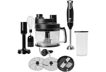 Номинальная потребляемая мощность: 550Вт Максимальная мощность: 1200 Вт 2 скоростных режима Функция«ТУРБО» (максимальное увеличение скорости) 9 основных функций: Приготовление пюре, нарезка кубиками, приготовление напитков, замешивание теста, взбивание, нарезка, шинковка, тёрка, измельчение КОМПЛЕКТАЦИЯ: Чаша для измельчения (объём 2,0 л) Нож для измельчения Мерный стакан для смешивания (объём 0,6 л) Насадка венчик Насадка блендер с 4-х лопастным ножом Насадка для нарезки кубиками Насадка для приготовления пюре Диск-тёрка для драников Двусторонний диск для терки и нарезки/шинковки Толкатель