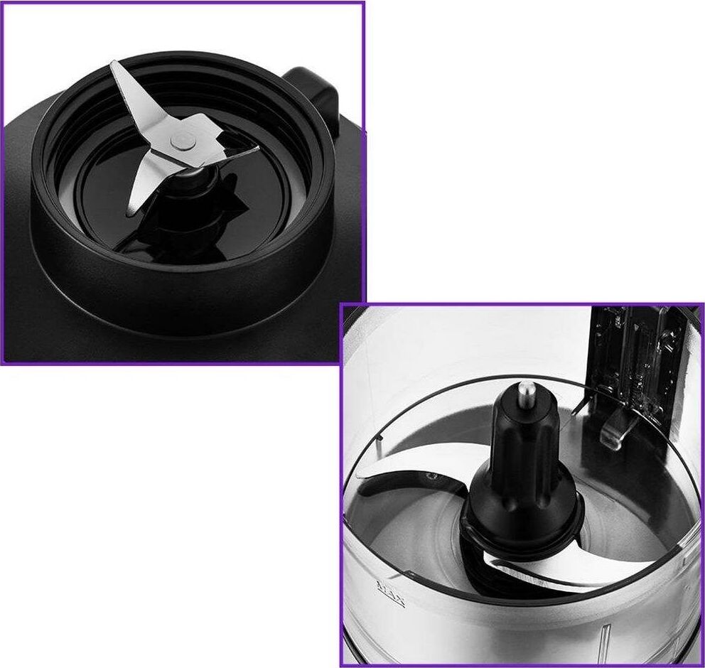 Мощность 400 Вт. Количество скоростей 2. Импульсный режим есть. Емкость основной чаши 0.5 л. Материал оcновной чаши пластик. Емкость чаши блендера 0.6 л. Материал чаши блендера пластик. Блендер есть. Терка есть. Шинковка есть. Колка льда есть. Измельчитель есть. Нож из нержавеющей стали есть. Прорезиненные ножки есть. Цвет серебристый/черный. Размеры (ШхВхГ) 135 х 365 х 150 мм.