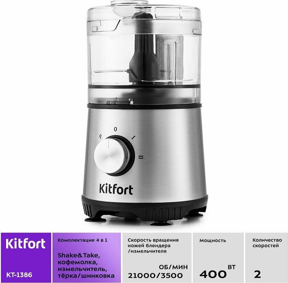 Кухонный комбайн KITFORT КТ-1386 серебристый/черный