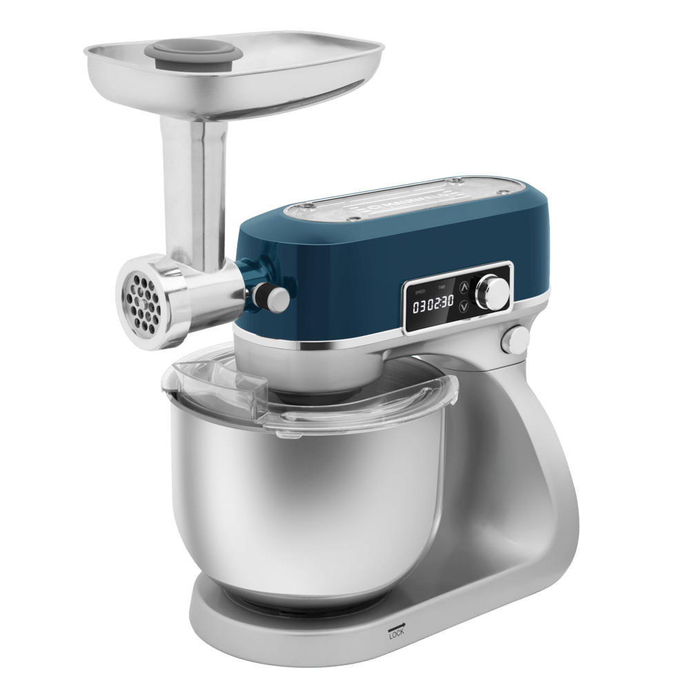 Кухонный комбайн MAUNFELD MF-425BL имеет планетарный миксер, это значит, что в чаше продукты перемешиваются особенно тщательно. Также есть 12 скоростей, вы можете подобрать для себя нужный вам режим. Комплектация предусматривает наличие венчика, крюка для замешивания теста, лопатки для перемешивания. Объем чаши миксера составляет 6 литров, что позволяет смешать или взбить большое количество ингредиентов. Ключевые особенности: Планетарное вращение 12 скоростей Большая чаша