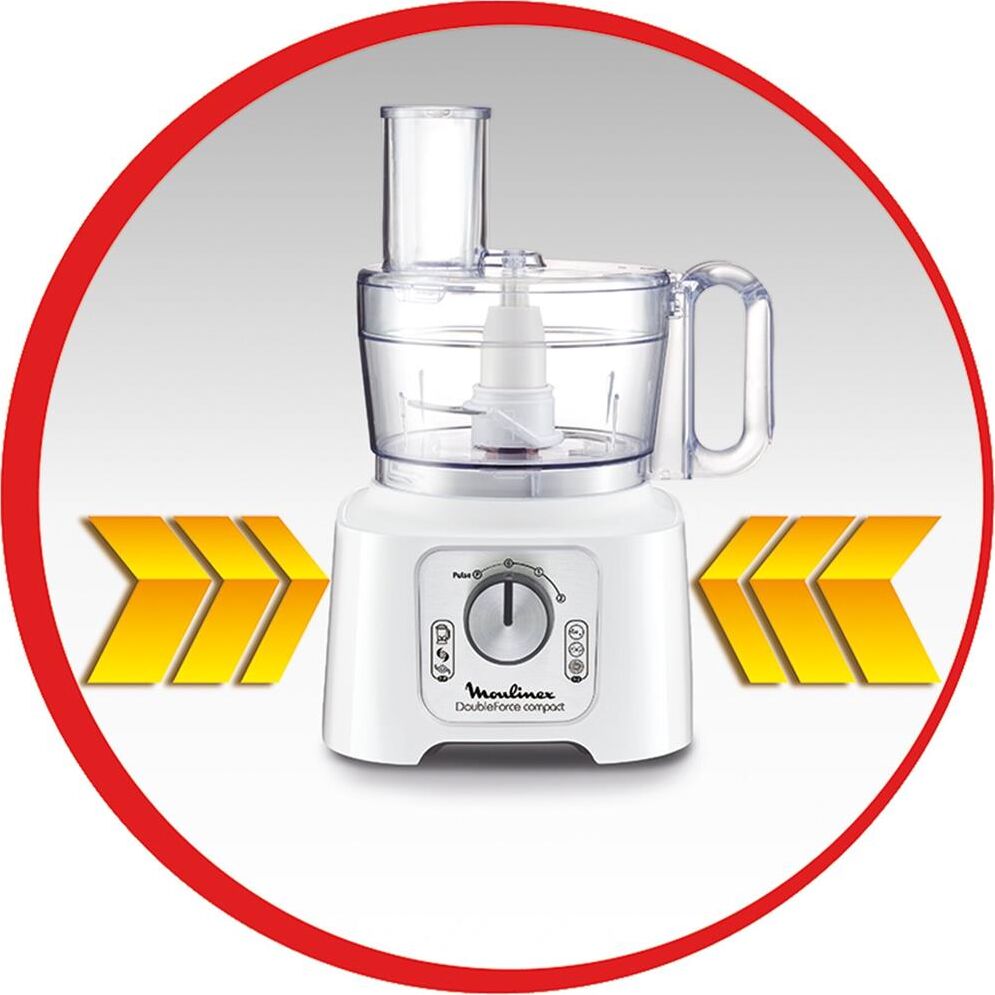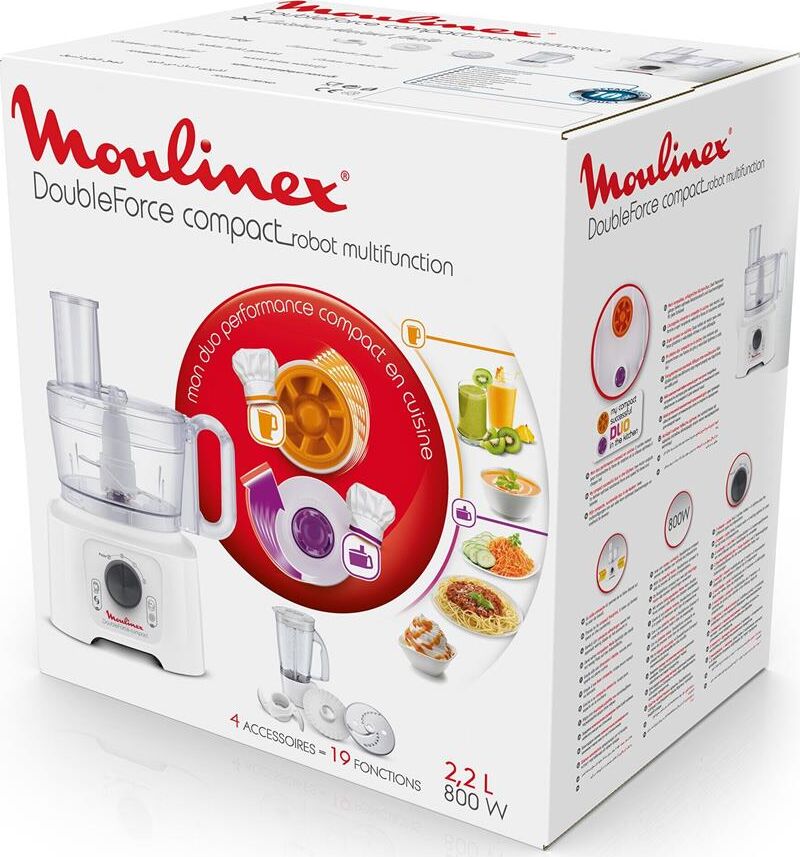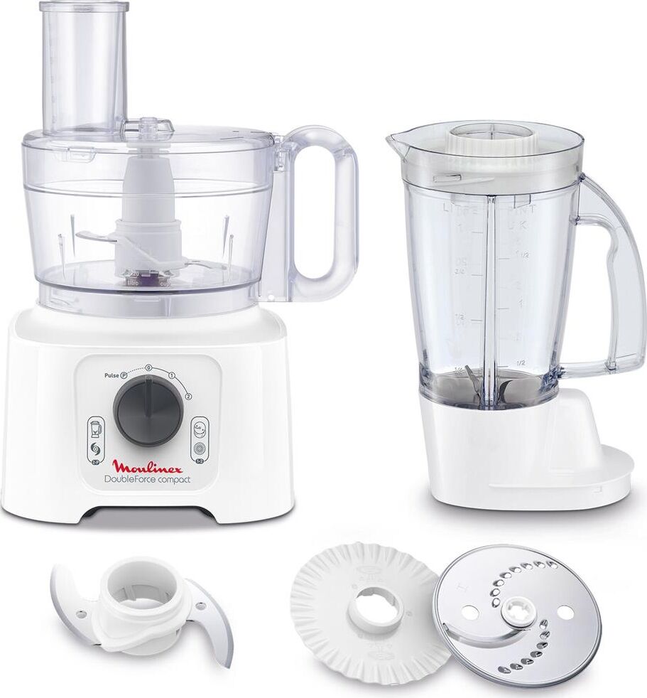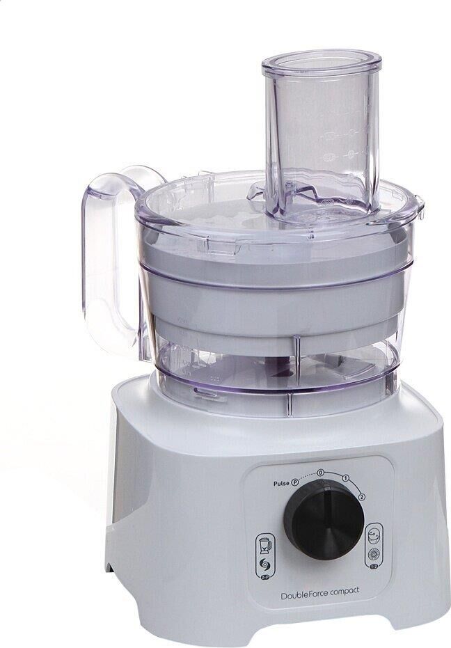 Материал корпуса пластик. Мощность 800 Вт. Управление механическое. Серия DoubleForce Compact. Цвет белый. Вес 2.83 кг. Насадки Стационарный блендер, Крупная терка, Шинковка. Тип кухонный комбайн. Объем чаши 2.2 л. Материал чаши Пластик. Количество скоростей 2. Функция Pulse Есть. Рубящий нож из нержавеющей стали. Чаша блендера Есть.