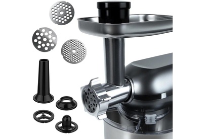Многофункциональный кухонный комбайн мощностью 1500 Вт с 6 скоростями и импульсным режимом (от 70 до 220 об/мин) станет незаменимым помощником на кухне. Прибор работает от сети 220-240 В (50-60 Гц) и оснащен 4.5-литровой чашей из нержавеющей стали и 1.5-литровым стеклянным блендером, сочетая функции мясорубки, блендера, планетарного миксера и овощерезки (докупается отдельно). Прочный АБС-пластиковый корпус в железно-сером цвете дополнен LED-индикатором работы и удобным рычагом для подъема рабочей головки. Особенности включают плавную регулировку скорости, импульсный режим, ножки-присоски для устойчивости и простую смену насадок. В комплекте: металлическая чаша, защитная крышка, крюк для теста, плоский битер, венчик для взбивания, блендер, мясорубка (с насадками для колбасок и кеббе), руководство пользователя. Устройство упаковано в подарочную и транспортировочную коробки, а уровень шума менее 75 дБ делает работу комфортной.