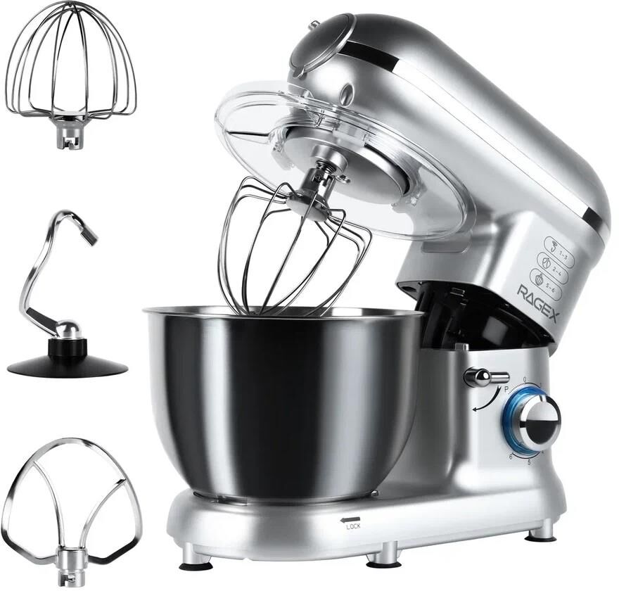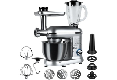 Многофункциональный кухонный комбайн R101-200 мощностью 1500 Вт с 6 скоростями и импульсным режимом (от 70 до 220 об/мин) станет незаменимым помощником на кухне. Прибор работает от сети 220-240 В (50-60 Гц) и оснащен 4.5-литровой чашей из нержавеющей стали и 1.5-литровым стеклянным блендером, сочетая функции мясорубки, блендера, планетарного миксера и овощерезки (докупается отдельно). Прочный АБС-пластиковый корпус в железно-сером цвете дополнен LED-индикатором работы и удобным рычагом для подъема рабочей головки. Особенности включают плавную регулировку скорости, импульсный режим, ножки-присоски для устойчивости и простую смену насадок. В комплекте: металлическая чаша, защитная крышка, крюк для теста, плоский битер, венчик для взбивания, блендер, мясорубка (с насадками для колбасок и кеббе), руководство пользователя. Устройство упаковано в подарочную и транспортировочную коробки, а уровень шума менее 75 дБ делает работу комфортной. Идеальный выбор для профессиональных кулинаров и домашних поваров.