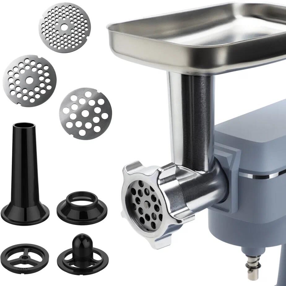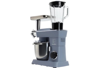 Кухонный комбайн R112-418 представляет собой многофункциональное устройство "14 в 1", предназначенное для выполнения широкого спектра кулинарных задач. Модель оснащена двигателем мощностью 1300 Вт, обеспечивающим эффективную работу с различными продуктами. Объем основной чаши составляет 4.5 литра, что позволяет обрабатывать значительные объемы ингредиентов. Комбайн работает от стандартной электрической сети 220-240 В, 50/60 Гц. В комплектацию входят разнообразные насадки и аксессуары, расширяющие функциональность устройства: ножи для измельчения, диски для нарезки ломтиками и шинковки, насадка для замешивания теста, венчик для взбивания, соковыжималка для цитрусовых, блендер, кофемолка, а также другие специализированные приспособления для выполнения 14 различных операций. Корпус выполнен в цвете "ледяной голубой".