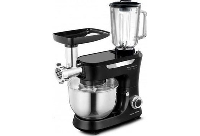 Кухонная машина Мощность: 1200 Вт Напряжение: 220-240В, 50/60Гц Объем чаши: 5л Объем блендера: 1,5л Кол-ва насадок: 12 Кол-во скоростей: 6 Импульсный режим (турбо): да Тип двигателя: AC (с медной обмоткой) Материал корпуса: ABS - пластик Материал чаши: нерж сталь SUS 304 Материал блендера: стекло