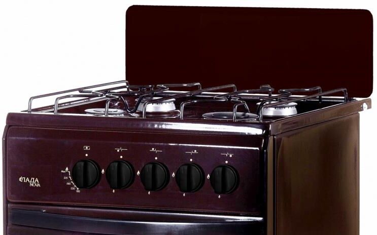 Габаритные размеры, см 50 х 60 х 85 * Тип плиты газовая * Цвет коричневый * Объем духовки 50л. — Газ-контроль горелок духовки — Двойное стекло дверцы духовки * Материал эмаль * 4-х горелочная, полный газ-контроль, щиток, проволочная решетка стола, хоз. отсек, решетка духовки, жаровня *