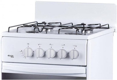 Габаритные размеры, см 50 х 60 х 85 * Тип плиты газовая * Цвет белый * Объем духовки 50л. — Газ-контроль горелок духовки — Двойное стекло дверцы духовки * Материал эмаль * 4-х горелочная, полный газ-контроль, щиток, проволочная решетка стола, хоз. отсек, решетка духовки, жаровня *