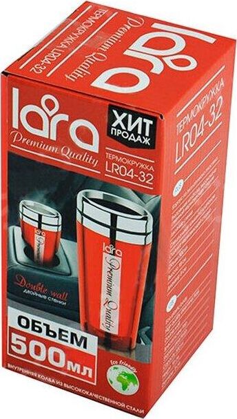LR04-32 термокружка LARA - 500мл, высота 18см, диаметр 8см, стальная внутренняя поверхность